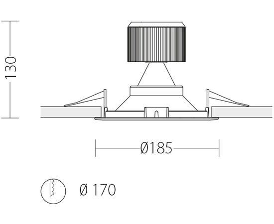 Встроенный светодиодный светильник, оснащенный рассеивателем из закаленного стекла. Поставляется в комплекте с электронным балластом.