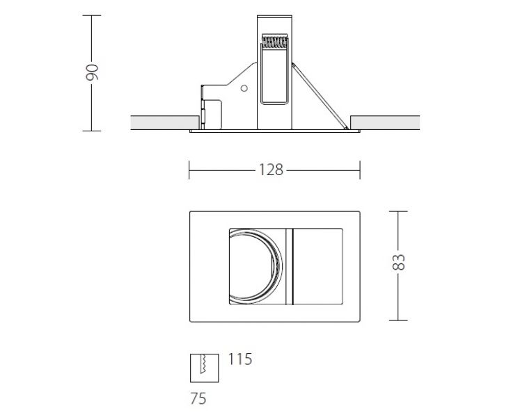 Встроенный поворотный светодиодный светильник с оптикой, оснащенной рассеивателем из закаленного стекла.