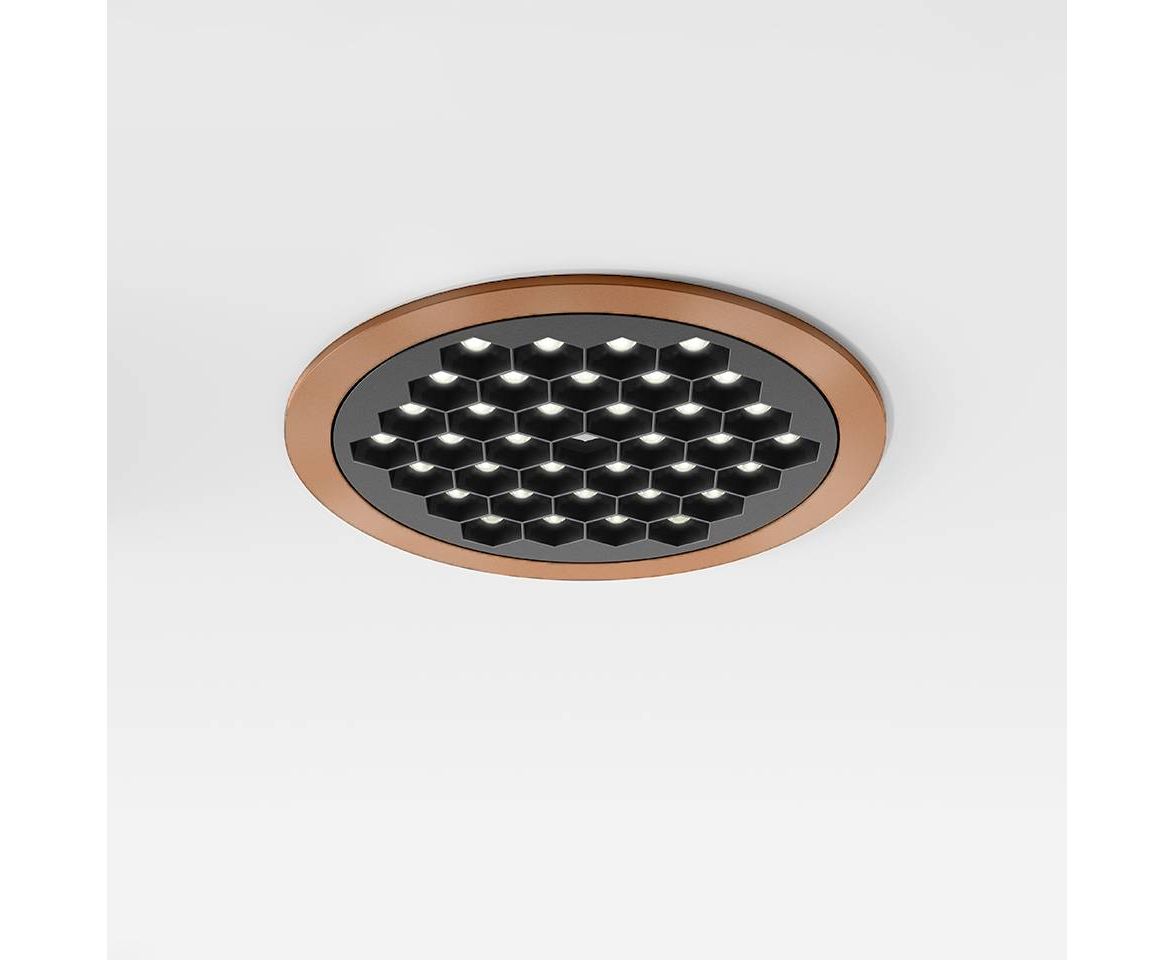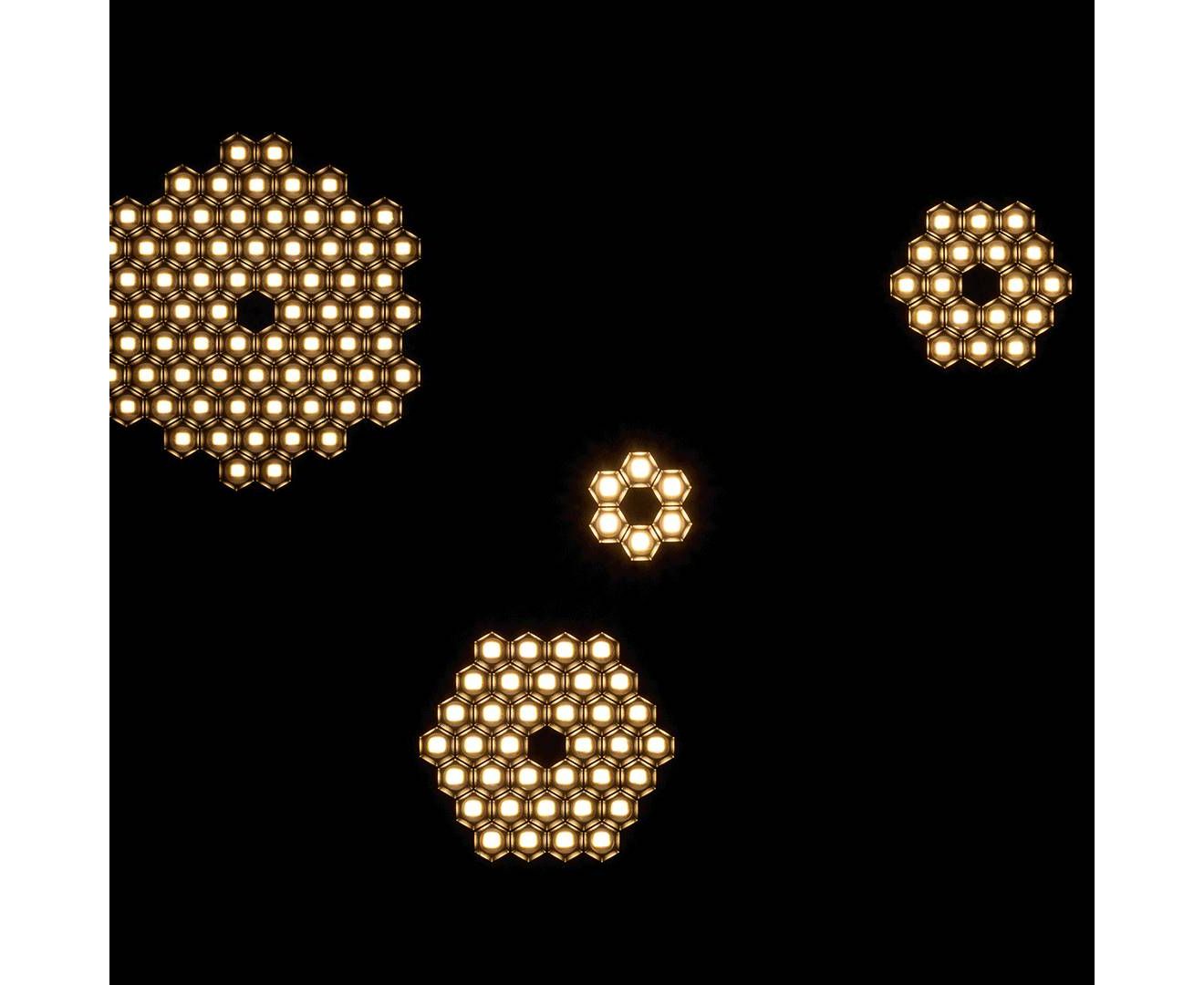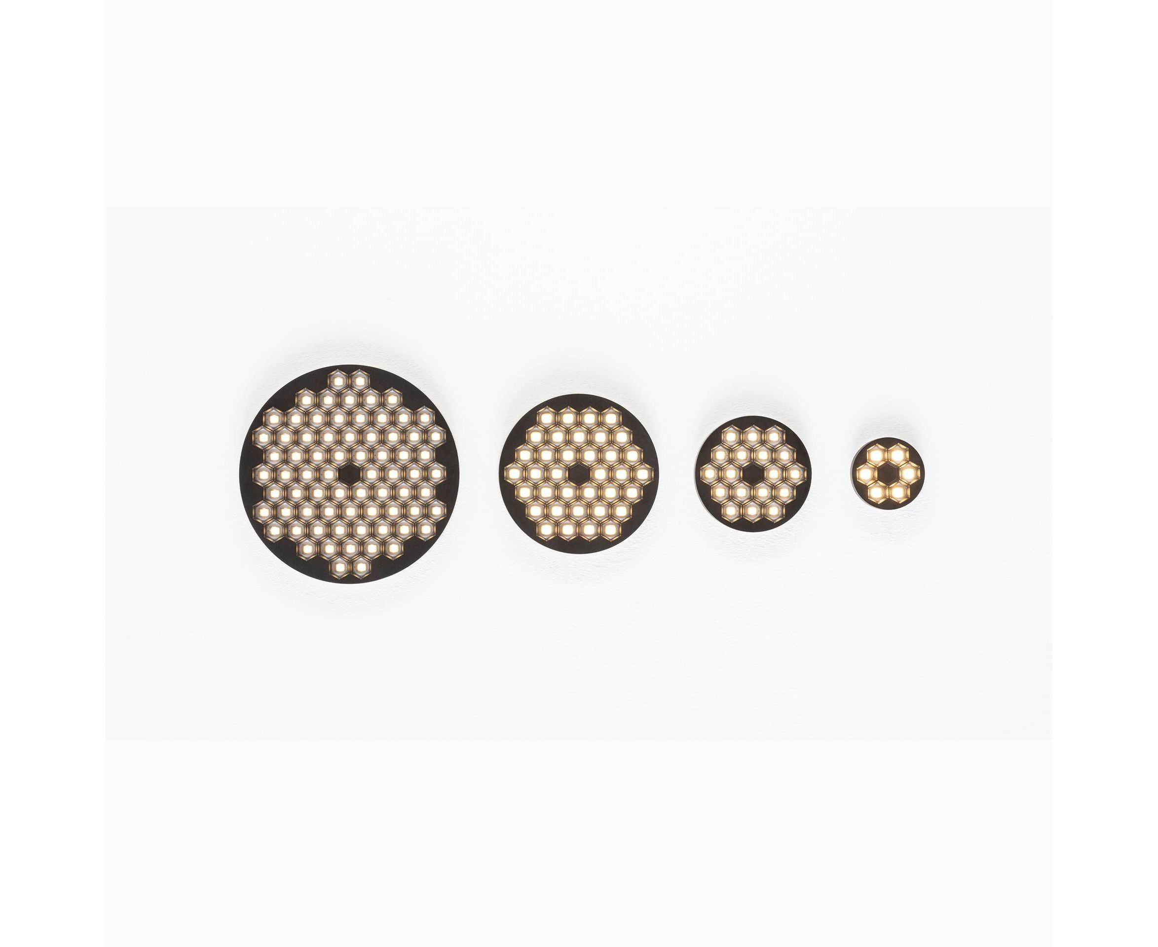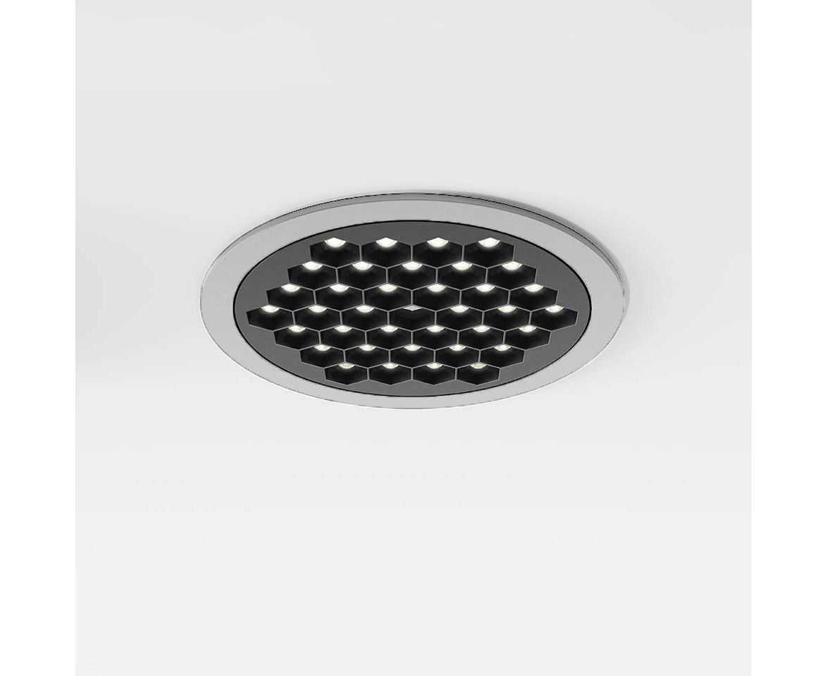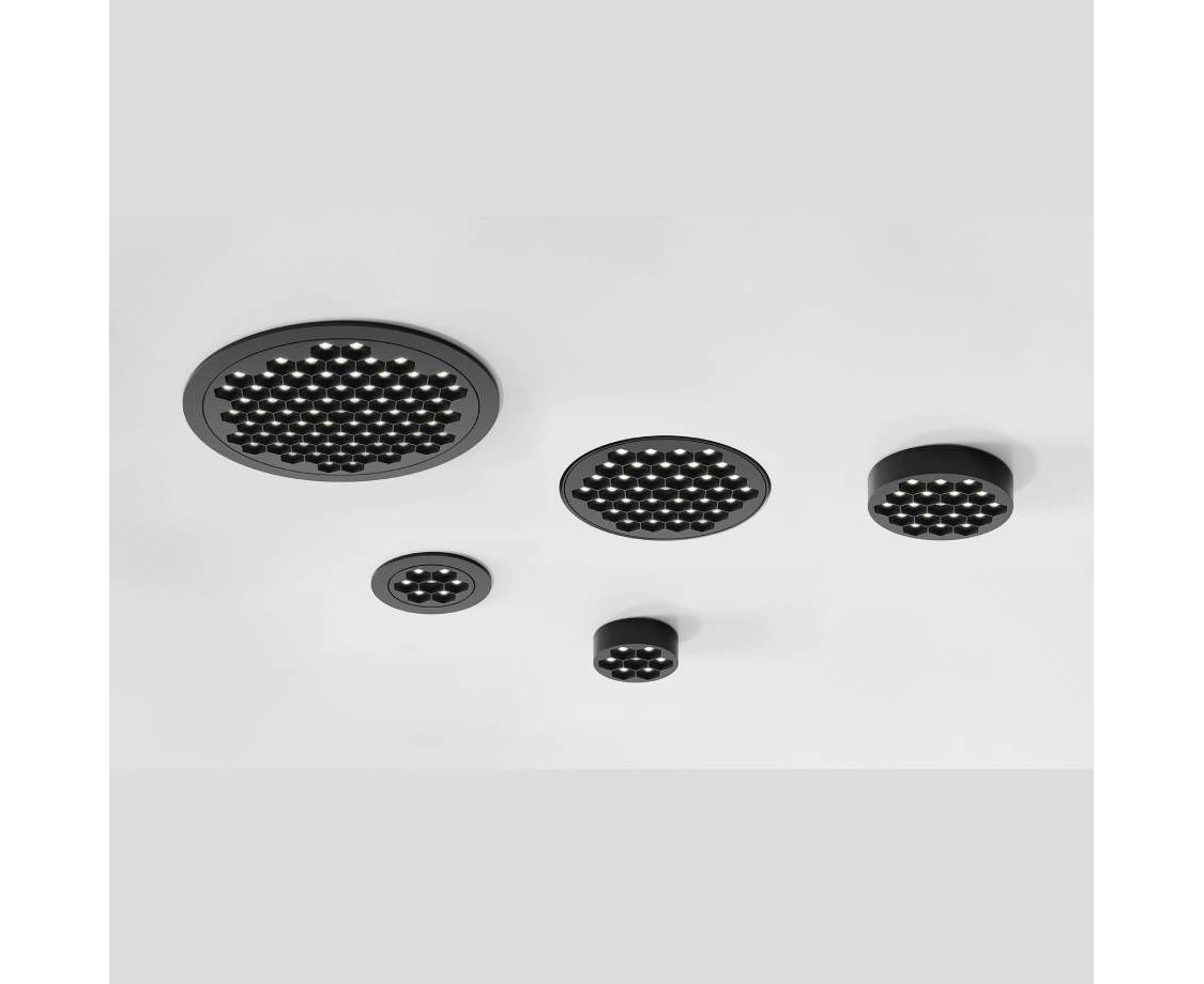 Helgoland - это эффективный и идеально управляемый принцип освещения, который применяется к постепенной, компактной и оптимизированной геометрии, способной обеспечить хорошее освещение в любом пространстве. Запатентованная технология преломляющей оптики уменьшена в размерах и разработана в соответствии с шестиугольной сеткой, которая максимизирует плотность излучаемого светового потока. Шестиугольная геометрия позволяет размещать элементы бок о бок, не тратя впустую пространство, в соответствии с формой пчелиных сот. Эта модель вдохновлена природой, интеллектом пчел. Геометрия обеспечивает свободный, линейный или радиально-ориентированный рост, как и в этих первых версиях Helgoland. Распределение мощности светодиодов помогает обеспечить хорошее рассеивание энергии за счет уменьшения общей занимаемой площади. В то же время различные оптические элементы взаимодействуют для достижения высокого светового потока, который выражается в идеально равномерном излучении света. Чрезвычайно компактный размер и шестиугольная геометрия в сочетании гарантируют устранение эффекта множественных теней. Шестиугольный экран, который необходим для визуального комфорта, поскольку позволяет избежать бликов, формируется вокруг круглой линзы, которая улавливает 100% потока, излучаемого светодиодом, и управляет им. В результате получается очень маленький оптический двигатель толщиной всего 12,5 мм, который становится универсальным принципом работы со светом, применимым в бесконечных ситуациях. Helgoland имеет оптимизированную конструкцию также в отношении конструкции различных модификаций. Световой двигатель на самом деле является элементом, который можно комбинировать с различными аксессуарами для потолочной или встраиваемой установки, с рамой или без нее, а также с регулируемым кронштейном, который соединяет его с другими системами и направляющими из коллекции, такими как Sylt. Его минимальные размеры позволяют ему вписываться в любую обстановку в любое время. Helgoland отличается рациональным использованием материалов, общей занимаемой площади, веса, оптимизированными компонентами, ответственным использованием энергии благодаря эффективности до 150 лм/Вт.