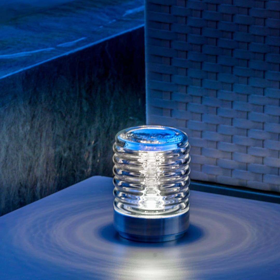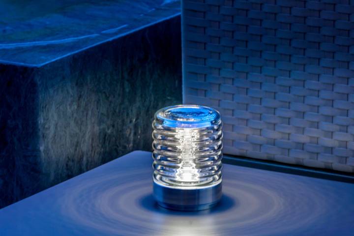 Ripple подчеркивает, как наружное освещение, которое обязательно должно быть техническим, но также может иметь сильную декоративную привлекательность и интегрироваться в ландшафт, усиливая этот аспект: в данном конкретном случае за счет отражений света и тени на окружающих поверхностях, будь то листва живой изгороди, стена или текстурированный тротуар или даже мебель.